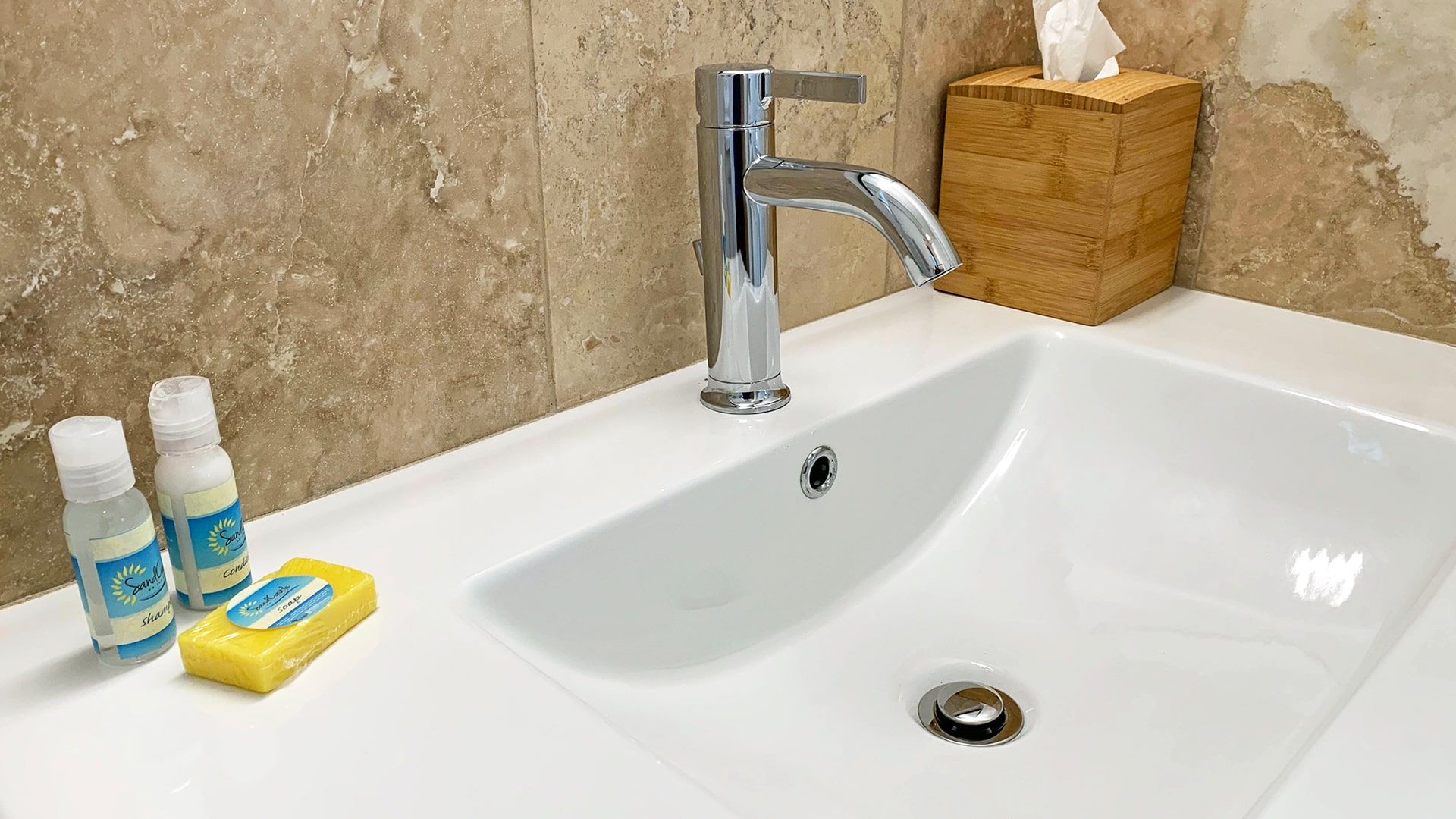 All accommodations have private baths, air conditioning, overhead fans, cable TV, and complimentary wi-fi. The suites and luxury villas have kitchens & separate living rooms, many with sleep sofas. The hotel offers a complimentary continental breakfast, welcome drink, two fresh water pools, book lending library and beach towels.