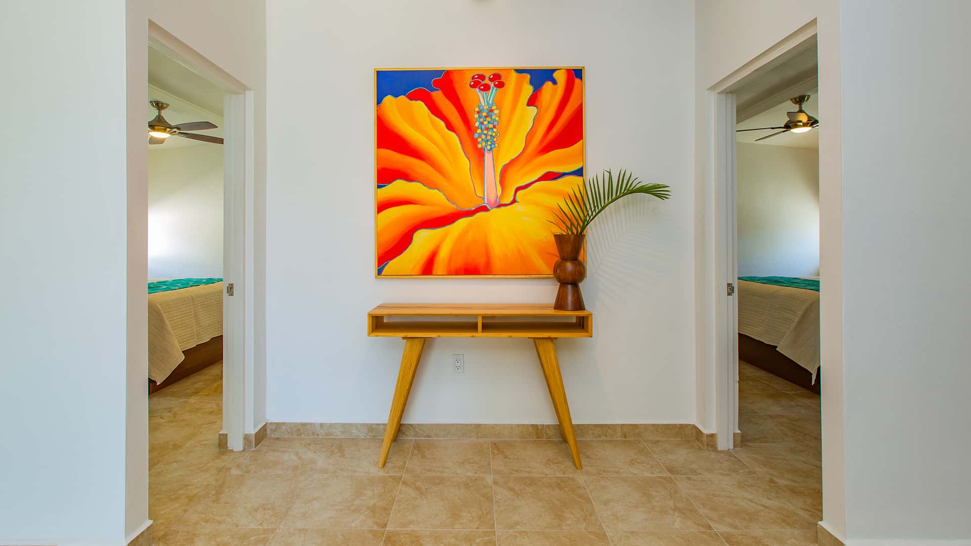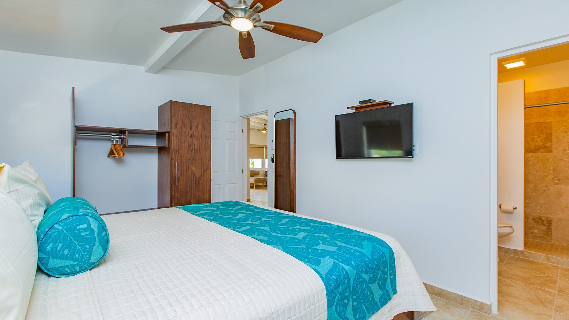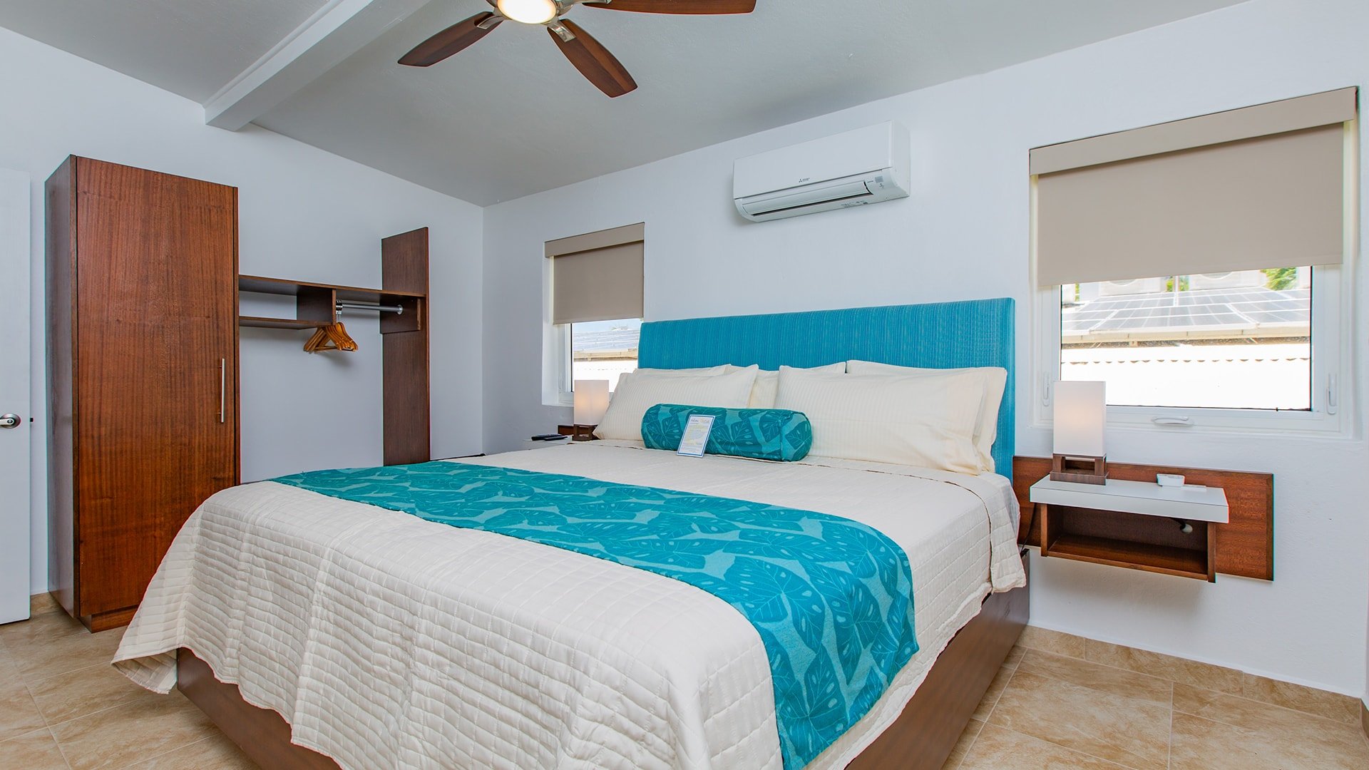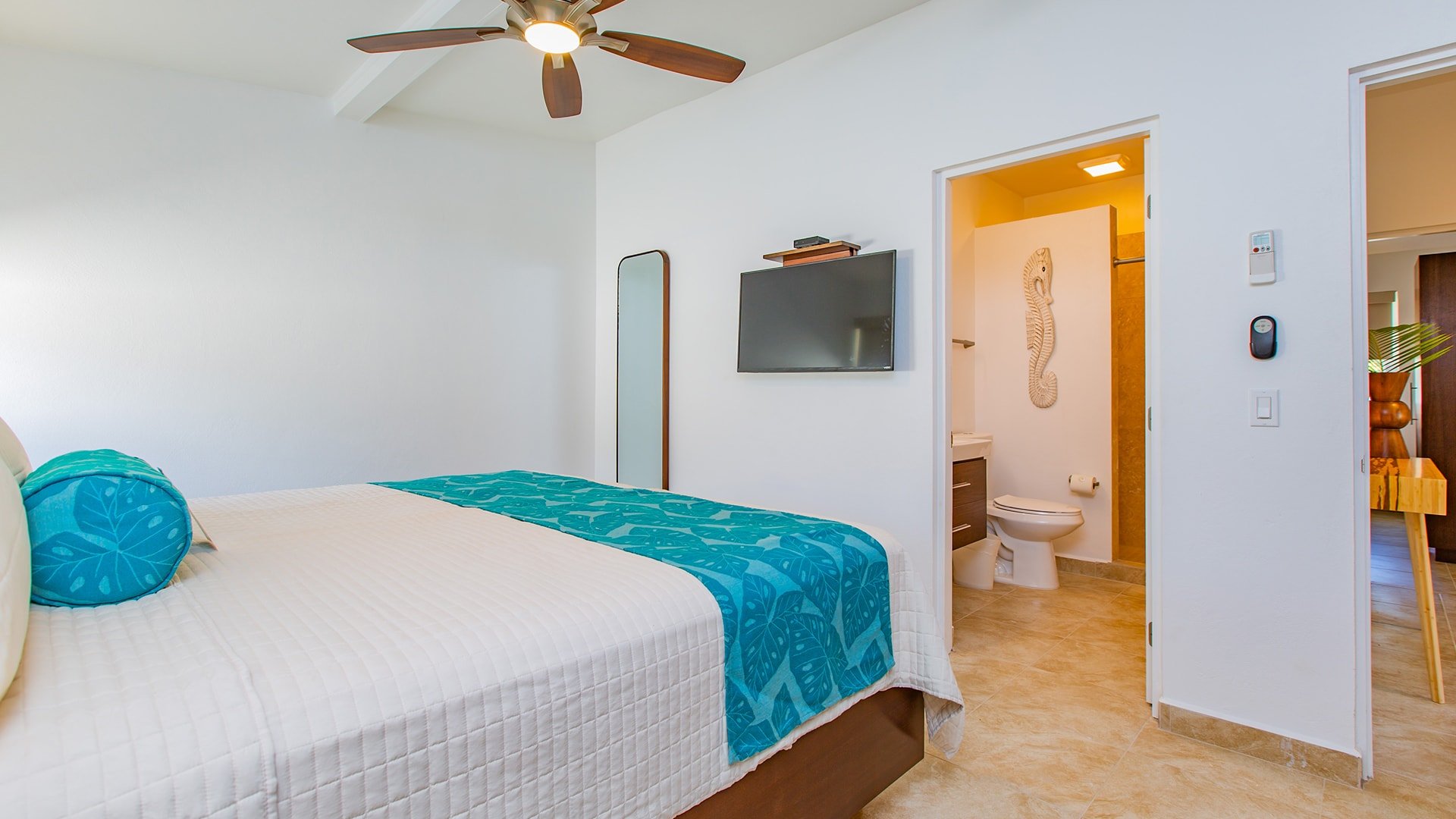 A spacious villa with two king bedrooms with full en suite bathrooms, just steps from the Caribbean Sea. Well equipped with a full kitchen, spacious living/dining area, screened in porch, and private patio.