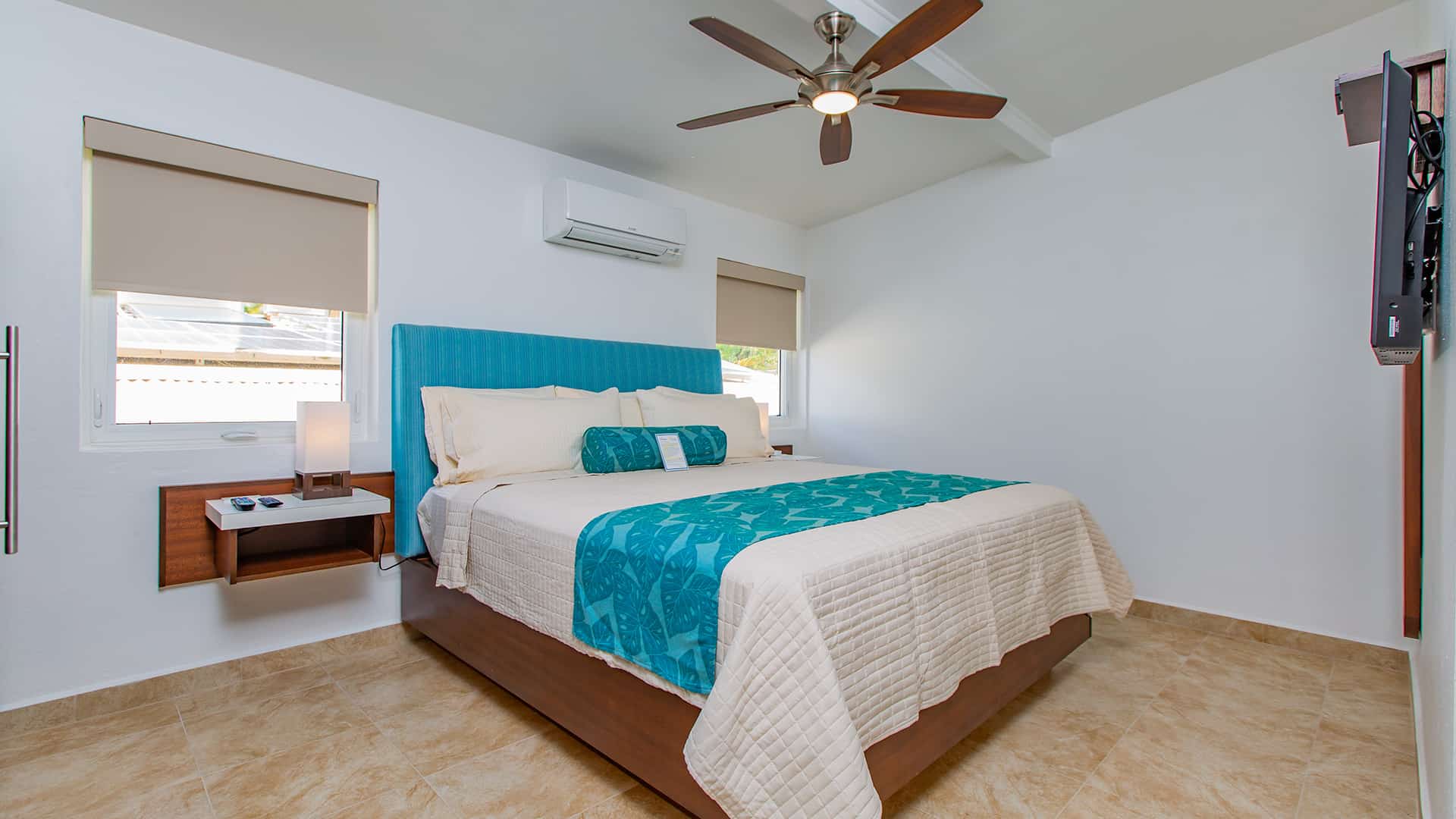 All accommodations have private baths, air conditioning, overhead fans, cable TV, and complimentary wi-fi. The suites and luxury villas have kitchens & separate living rooms, many with sleep sofas. The hotel offers a complimentary continental breakfast, welcome drink, two fresh water pools, book lending library and beach towels.