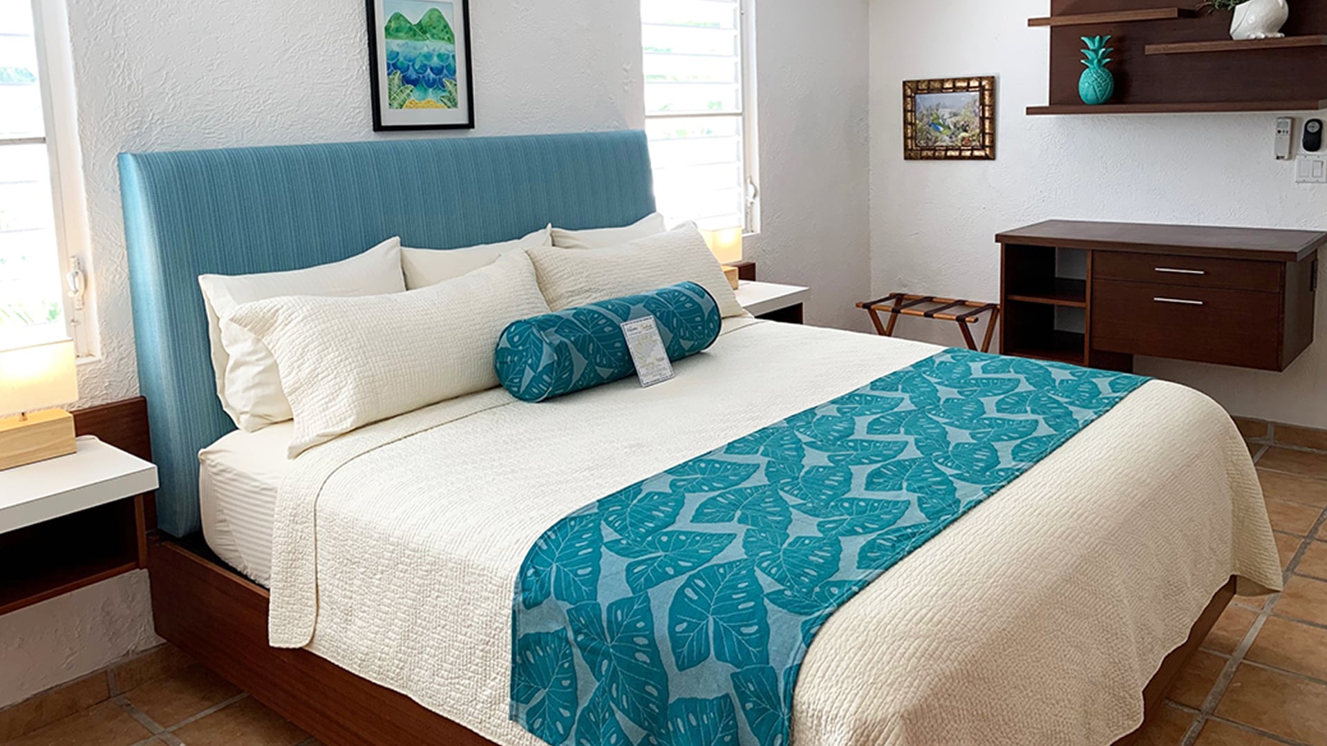 All accommodations have private baths, air conditioning, overhead fans, cable TV, and complimentary wi-fi. The suites and luxury villas have kitchens & separate living rooms, many with sleep sofas. The hotel offers a complimentary continental breakfast, welcome drink, two fresh water pools, book lending library and beach towels.